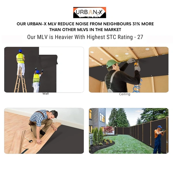 URBAN-X Mass Loaded Vinyl (MLV) is a dense, flexible material designed to block sound transmission. It's commonly used as a soundproofing solution in walls, floors, ceilings, and other surfaces where noise reduction is needed. Despite its density, MLV remains flexible, allowing it to conform to irregular surfaces and contours. MLV is commonly used in residential, commercial, and industrial settings to reduce noise from sources such as machinery, HVAC systems, traffic, and loud neighbors.MLV can be installed by adhering it to surfaces using appropriate adhesives or mechanically fastening it with screws, nails, or staples.
