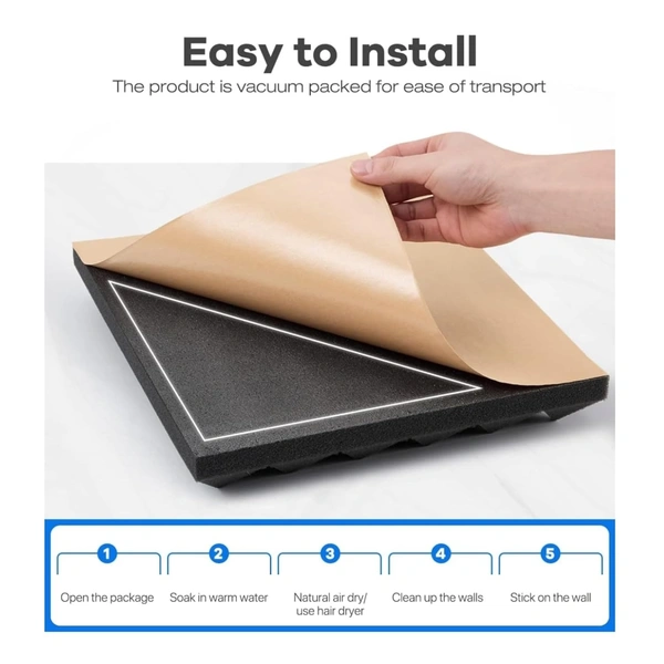 <ul><li> EXCELLENT SOUNDPROOFING AND ABSORPTION: Our studio acoustic foam products are designed with high sound trapping and noise cancelling capacity, making it very suitable for studio and home recording. These acoustic foam panels provide excellent sound insulation in your background environment so that the quality of the sound meets your standards.</li><li>HIGH DENSITY & SAFE MATERIAL: Our acoustic foam panels are composed of high density foam material of 50kg/m^3. In order to achieve effective sound insulation, URBAN-X acoustic foam is made of 100% polyurethane sponge without any irritated chemical elements. 2-inch thickness Instead of the normal 1-inch thickness, it can better achieve acoustic treatment, such as blocking noise and absorbing sound. Apply for recording studios, vocal booths, gaming rooms and control rooms.</li><li>HIGH DENSITY & SAFE MATERIAL: Our acoustic foam panels are composed of high density foam material of 50kg/m^3. In order to achieve effective sound insulation, URBAN-X acoustic foam is made of 100% polyurethane sponge without any irritated chemical elements. 2-inch thickness Instead of the normal 1-inch thickness, it can better achieve acoustic treatment, such as blocking noise and absorbing sound. Apply for recording studios, vocal booths, gaming rooms and control rooms.</li><li>EASY TO INSTALL: Our sound proofing foam products are extremely easy to install so that you can set up your professional studio in no time. Just take it out of the package, apply the SR Adhesive/Foam wall spray on back of each Panel and Paste it on the Surface of wall or Ceiling.</li><li>AFTER-SALE SERVICE GUARANTEE: We provide professional customer service. If you have any questions about soundproofing upholstery for walls, please feel free to contact us! Your 100% satisfaction is guaranteed; we are ready for any question about sound foam.</li></ul>